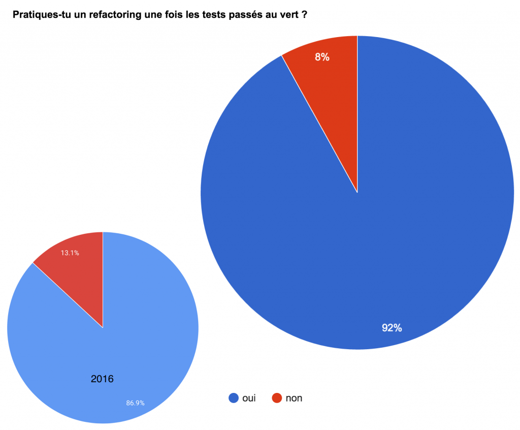 - Il y a plus de personnes qui refactor après que les tests soient au vert => TDD rules !