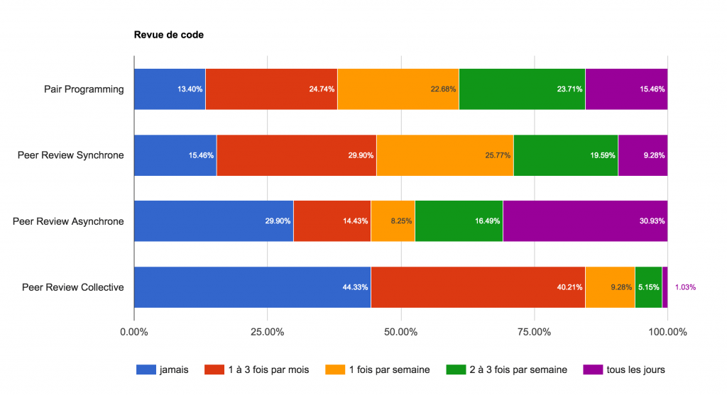 - seul 4,1% ne fait aucune revue de code (12,6% l'année dernière)