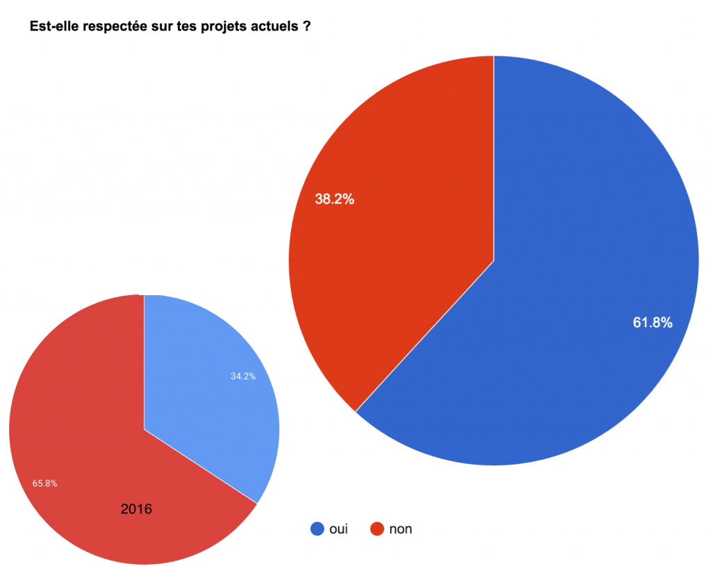 - ... et est nettement plus respectée sur leurs projets : 61,8% (34,2% en 2016)