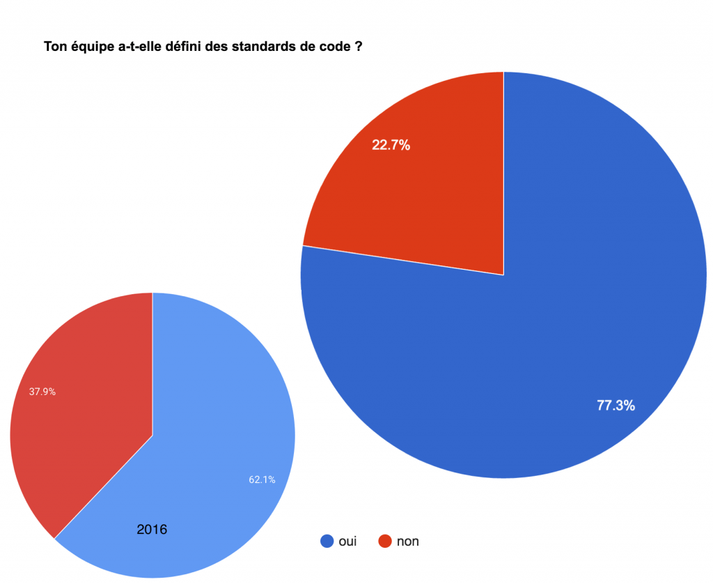 - 77,3% ont des standards de code sur leur projet (62,1% en 2016)