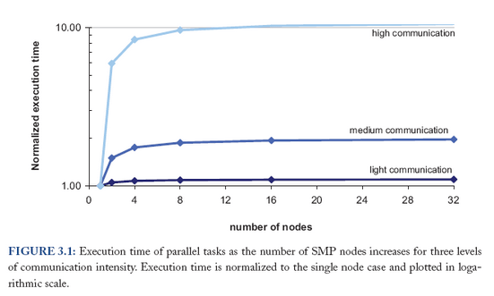 Ainsi, un unique processeur 128 cores (représentant le Superdome) peut être de l’ordre de 10 fois plus performant qu’un cluster de 32 machines 4 cores (représentant un cluster de Proliant) si la communication entre process est élevé. C’est beaucoup moins vrai si la communication entre process est faible. J’avoue qu’il me manque une quantification de “communication élevée” et “faible” notamment pour pouvoir le transposer au Gossip Protocol que l’on utilise souvent dans des stockages distribués.