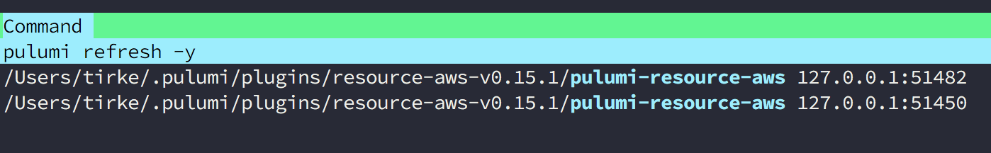 La Provider Pulumi wrappe donc celui de Terraform ce qui a pour conséquence directe qu’une opération simple comme pulumi refresh n’implique que deux processus, un pour l’engine et un autre pour le Provider.