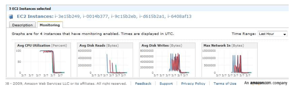 En terme d’utilisation, CloudWatch propose une API très simple ListMetrics pour connaître la liste des données qui sont actuellement agrégées et GetMetricStatistics. Cette dernière fonction propose de filtrer les résultats selon des critères tels que l’ami-id ou encore la configuration matérielle de l’instance.