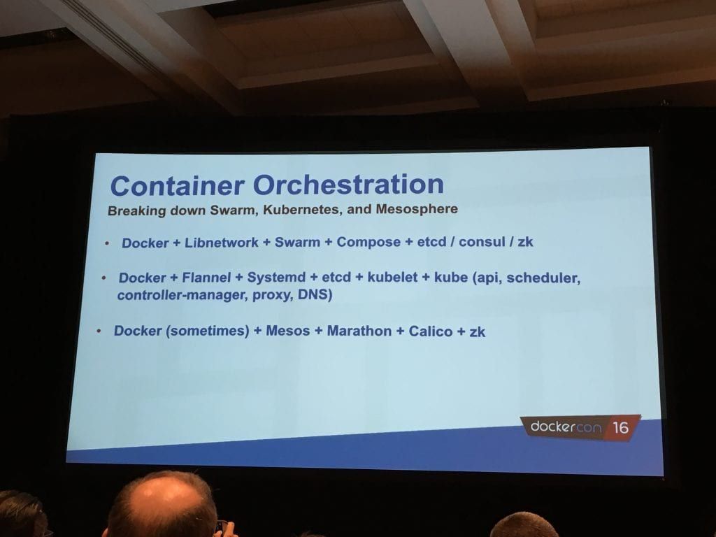 - We were excited about swarmkit before the DockerCon, and we didn’t hear a word about it during these 3 days. We don’t really know if it’s been integrated to the Docker Engine like Swarm, or if it has been dropped completely as a project. Huh. (Edit 28/06/2016: This point was clarified by Solomon Hykes himself in the comments below. Check his response if you're curious too.)
