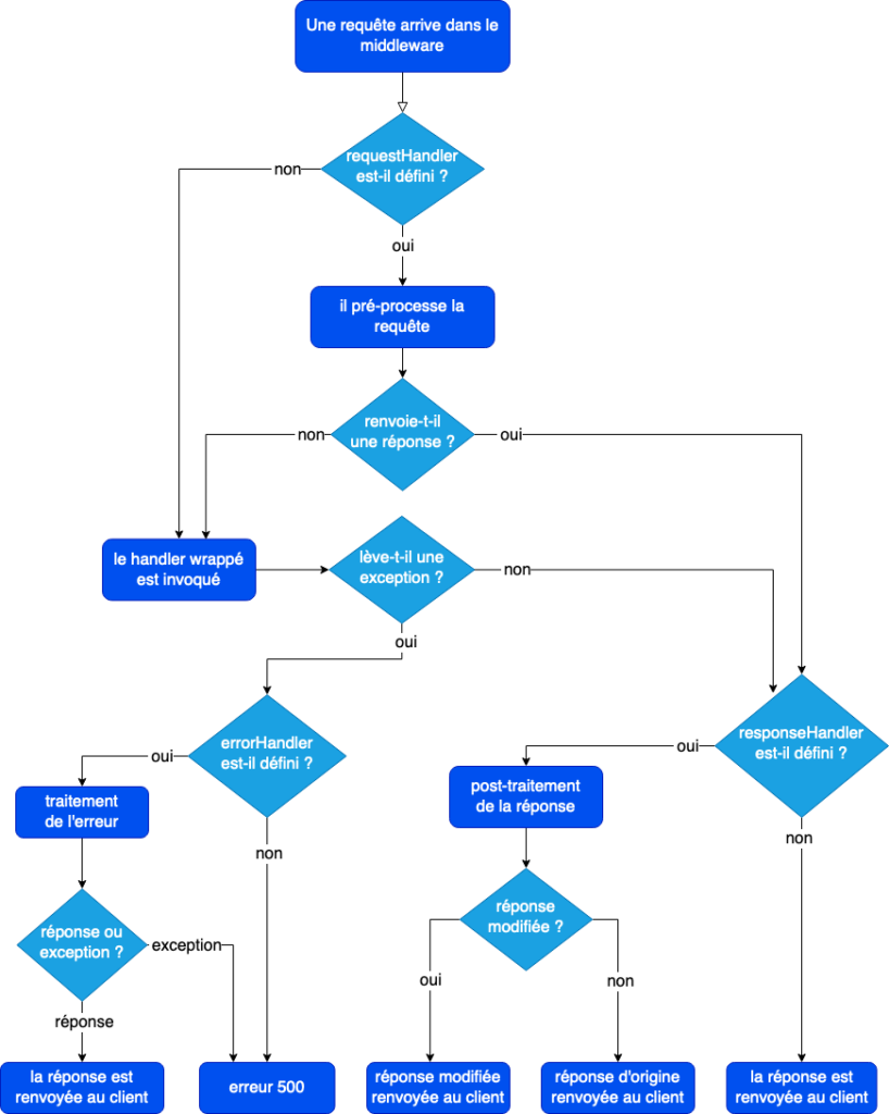 Schéma décisionnel expliquant le fonctionnement d’un middleware. Simple, non ?