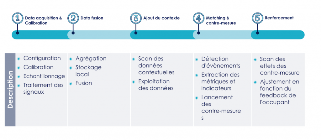 - les croiser avec des informations contextuelles (telles que la météo, le cadre sonore, l’agenda de l’usager…),