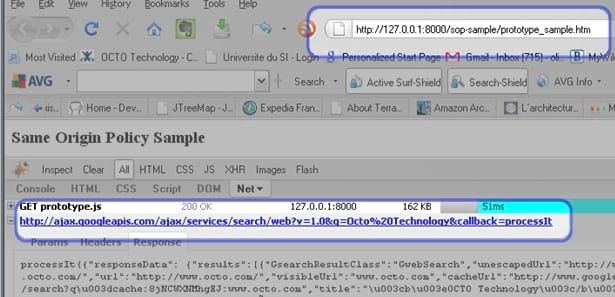 <script src="http://ajax.googleapis.com/ajax/services/search/web?v=1.0&q=Octo%20Technology&callback=processIt"> //balise script #2