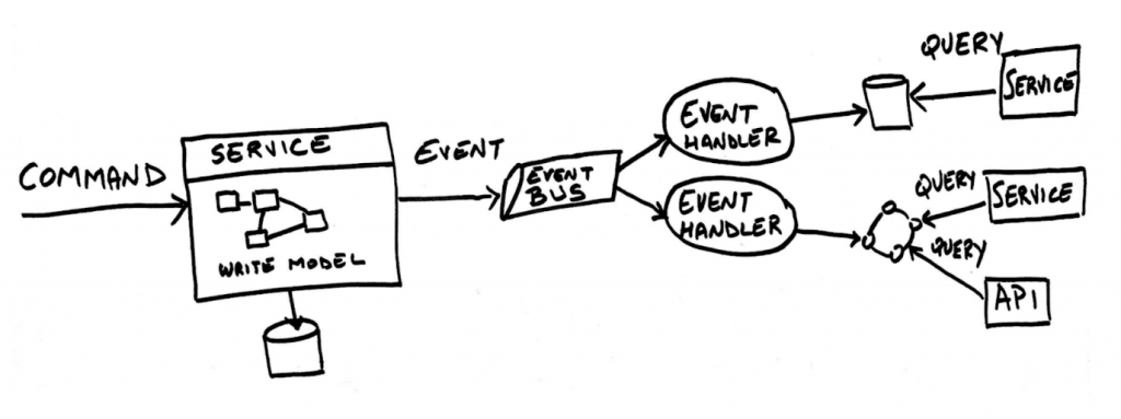 Dans ce type de système, on se base sur la notion d’événements pour maintenir la cohérence entre ces deux mondes, celui du modèle d’écriture et celui du modèle de lecture.