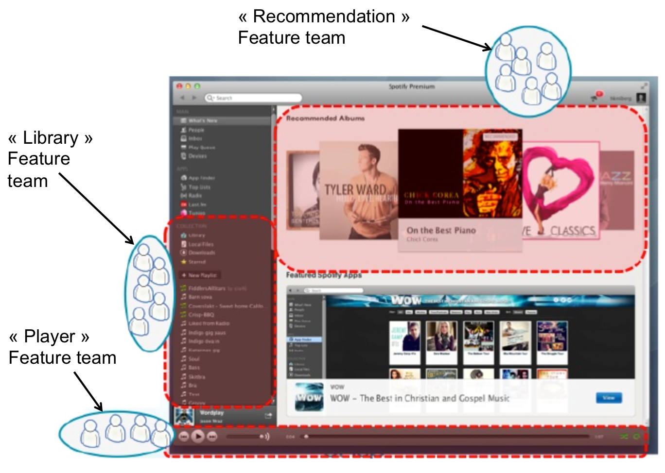 It is worth stressing that feature teams need to be as independent as possible from each other, on both organizational and product architecture levels. A feature team must be able to deliver a new version of its scope without impacting other teams, fostering an optimal TTM.