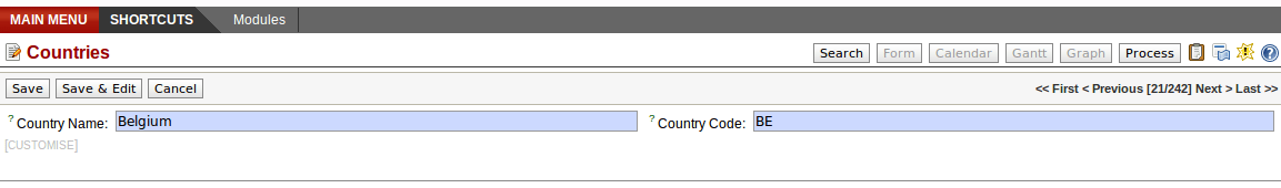The GUI also allows the modification of all business entries, customization of views and definitions of objects: