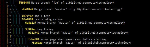 Un dernier point qui surprend lorsqu'on débute avec Git est l'historique qui apparait très peu lisible. En effet, avec 10 développeurs travaillant sur la branche master et synchronisant sur un dépôt centralisé, l'historique finit par ressembler à ça : /git-merge_resize.jpg)