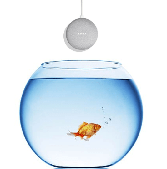 The goldfish from our office's reception was not recognized when we stuck a Google Home Mini to the bowl side.