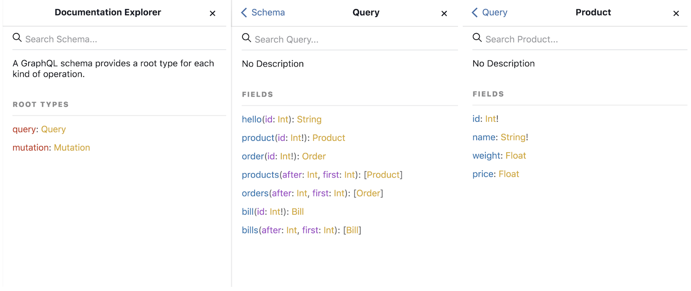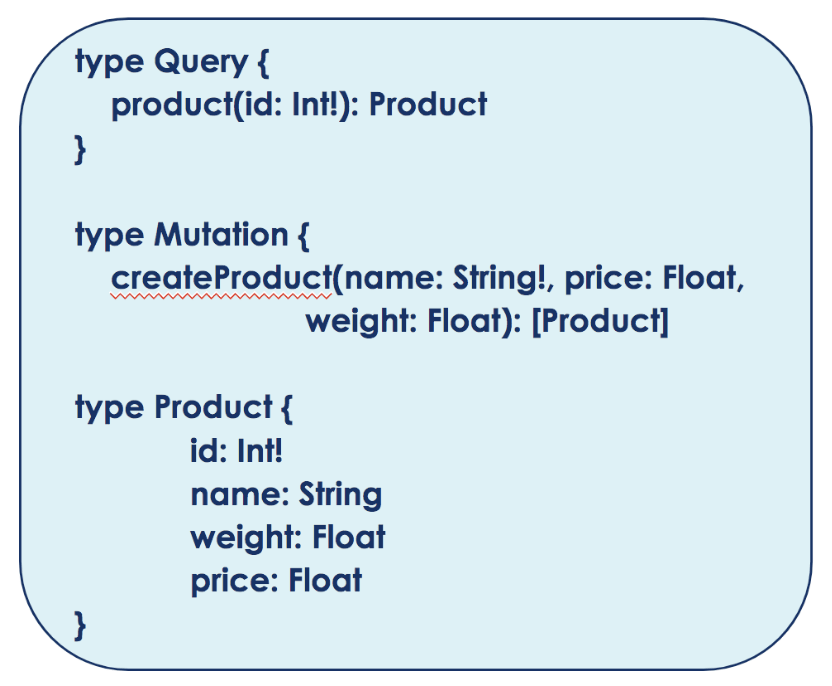 Illustrons ces notions avec l’exemple ci-dessus. Ici seule la requête product est proposée aux utilisateurs sous réserve qu’il précise l’id du produit dont il souhaite obtenir les informations. Le retour de la requête n’est constitué que d’un seul Product mais si on avait voulu une réponse avec tous les produits il aurait fallu ajouter des crochets autour de l’objet (ex [Product], tableau de produits_)._