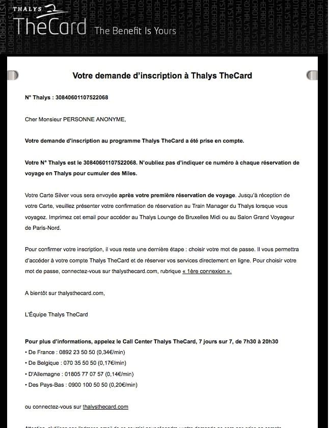 Régulièrement en déplacement à Bruxelles, le pays de la bière et du chocolat, j'ai jugé utile de me procurer la carte de fidélité Thalys.