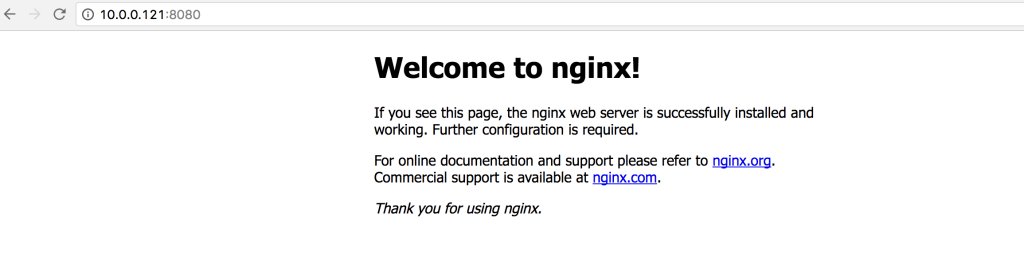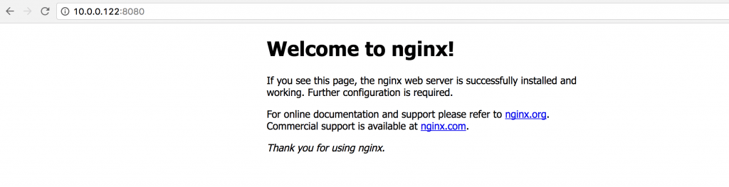 We can see that they are running on swarm-worker-02 (10.0.0.122) and swarm-worker-03 (10.0.0.123). So, if we try to access 10.0.0.122:8080:
