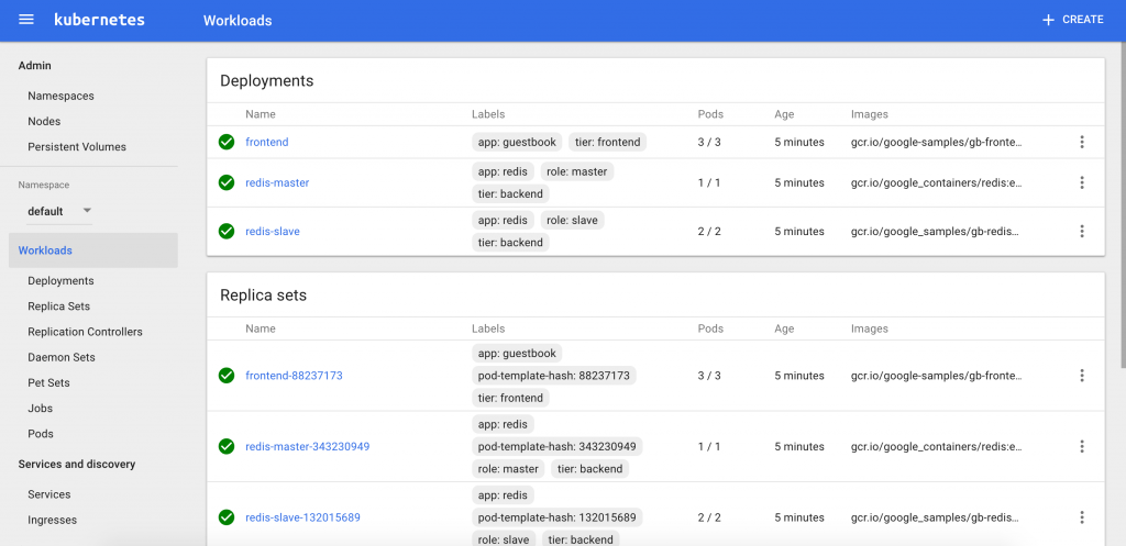 We're going to use the guestbook example that's included on the Kubernetes samples. This is a good application to test a proper installation, since it's a multi-tier application, with multiple components speaking to each other, on different nodes.