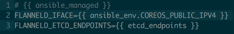 In order to configure flannel, we just add configuration environment variables under `/etc/flannel/options.env`. These specify that the flannel interface is this node's public IP, and that the cluster configuration is stocked in etcd cluster:
