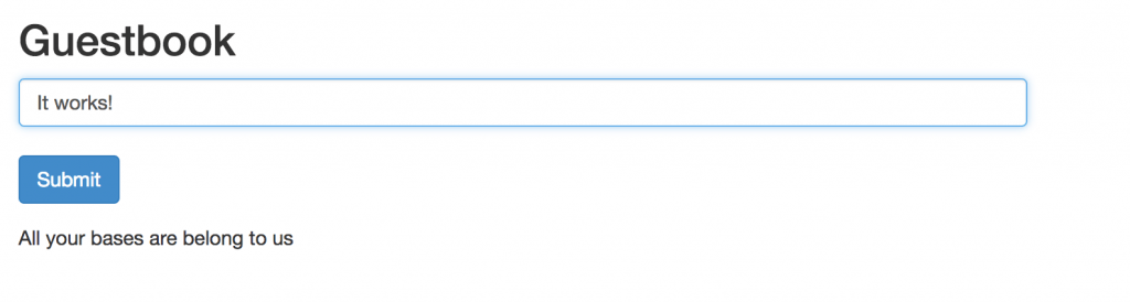 The application should be accessible on port 8080. You can test it by adding a message to the guestbook:
