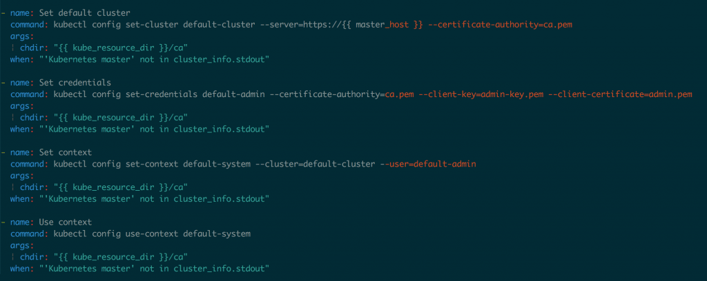 We're going to add a kube-config configuration, in order to specify the TLS resources that are necessary for secure communication between the different Kubernetes components. It can be seen here.
