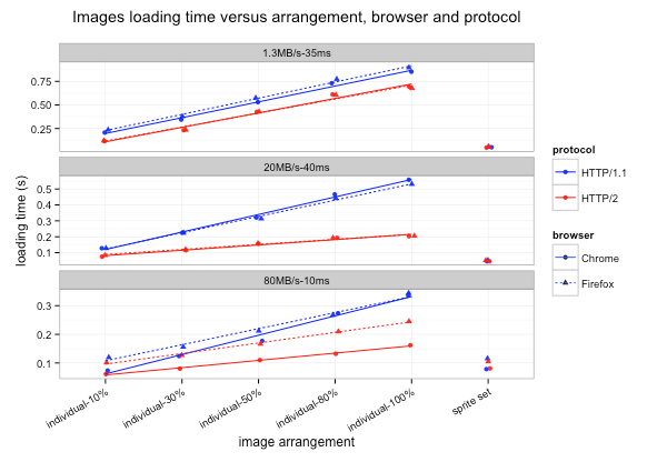 It could then become possible to load tens of images in parallel on the same TCP connection. As a consequence, using sprite sets to reduce the number of requests could become meaningless. All these sentences are still hypotheses: this article will show how reality is quite different from theory.