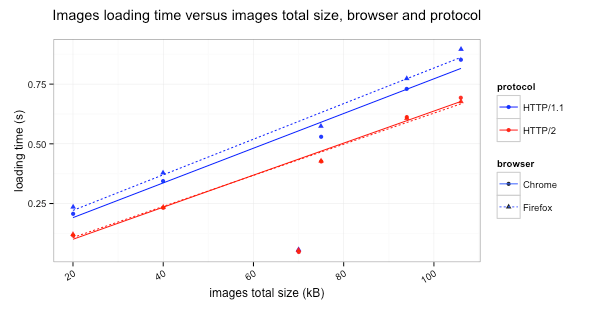 - HTTP/2 brings a clear decrease of load times compared to HTTP/1.1, but the HTTP protocol enhancement is not sufficient to reduce the front-end optimisations usefulness;