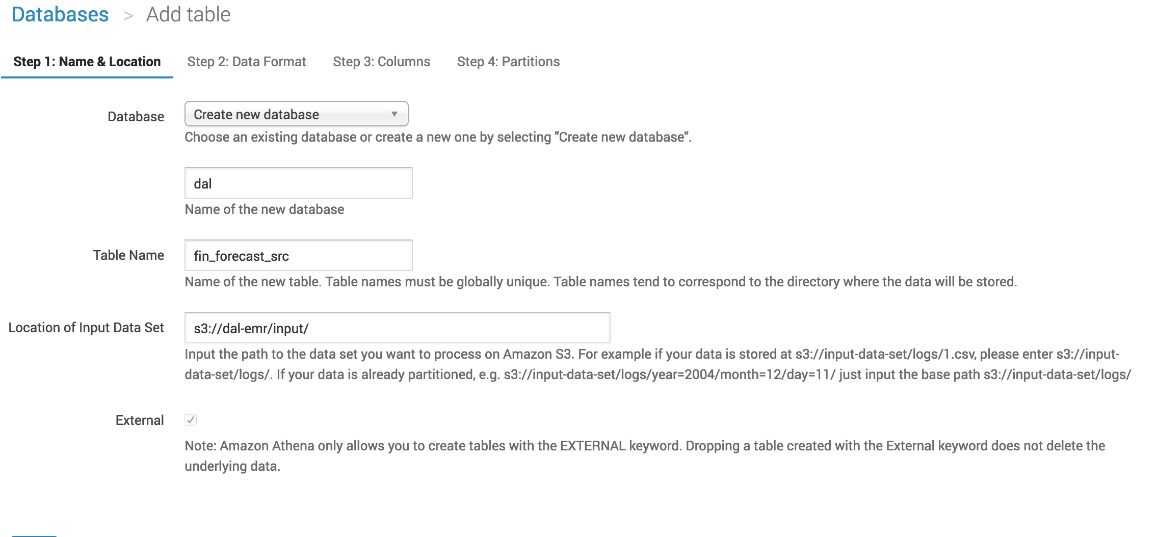 - Create the tables to match the files format stored on S3 (several formats are available: CSV, Json, Parquet, etc.)