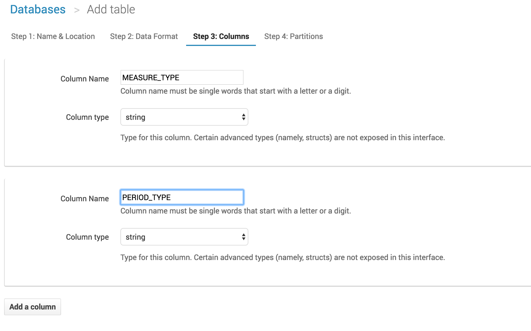 I had a proper and nice DDL -Data Definition Language- to upload with my 19 columns (only!) but I had to define each column one by one, to finally find out that her majesty Athena was building it for me.