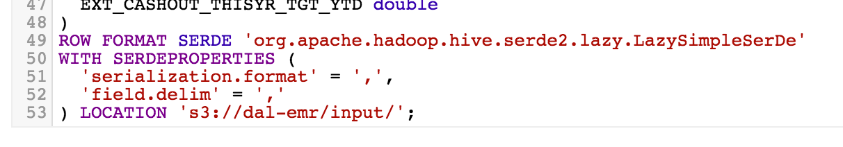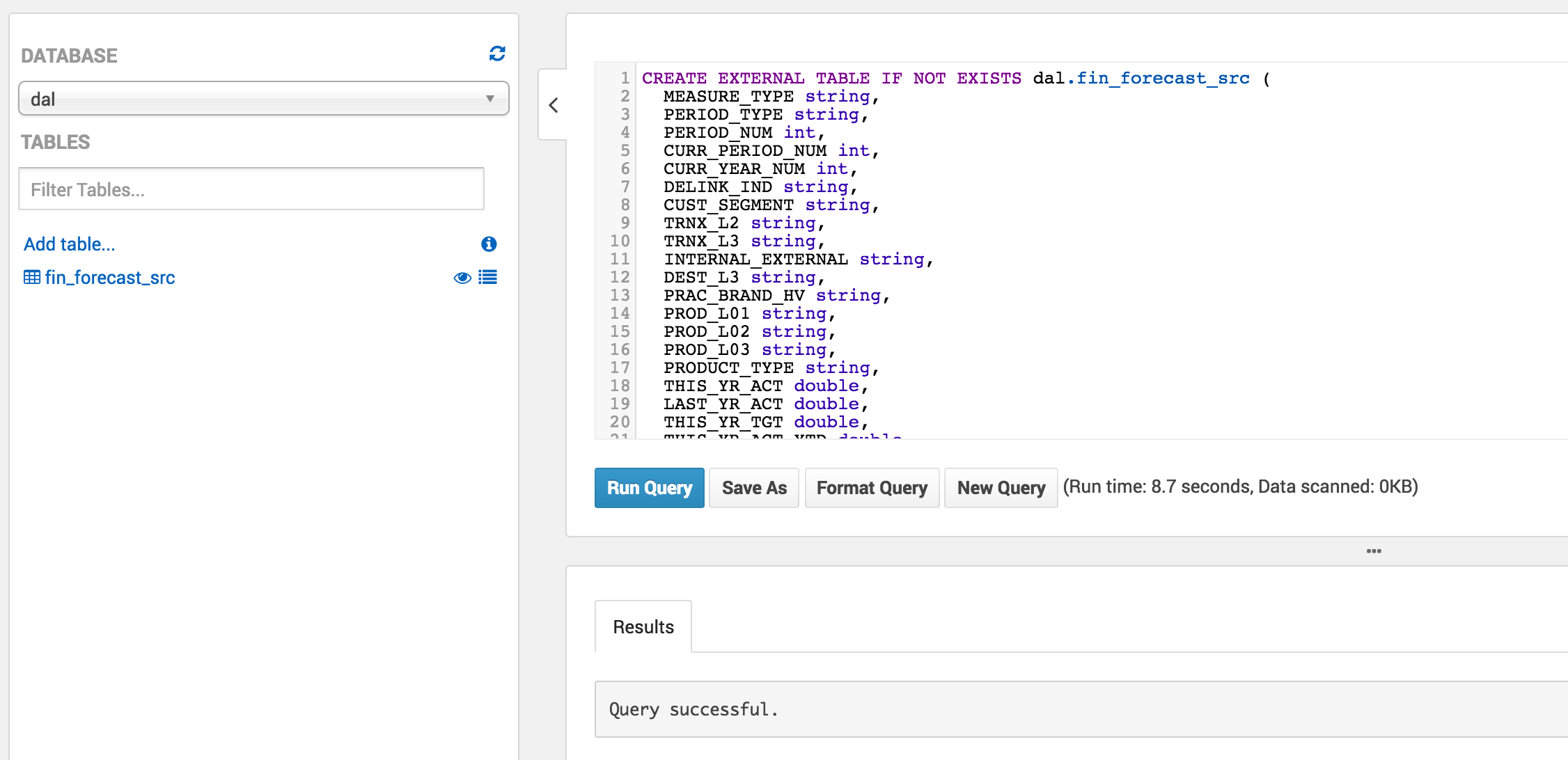 - the creation of a dedicated step for Hive (or equivalent) to create the table and execute the query