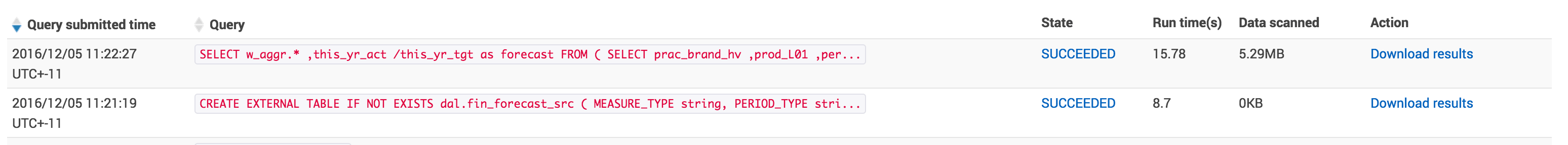 - Easy exploration: provided you have the proper rights, you are now able to test your queries against a vast amount of data for $5 per terabyte. No need to call the BI team to set up a EMR cluster for you, or to extract data for you with multiple back-and-forth when defining the query.