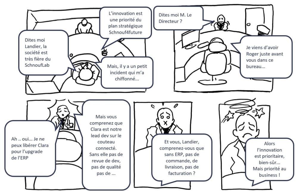 - Isolez les activités innovantes dans une structure à part (lab, incubateur, ...). Tant qu'elles seront gérées par un manager du Business as Usual, c'est l'urgence business qui aura la priorité
