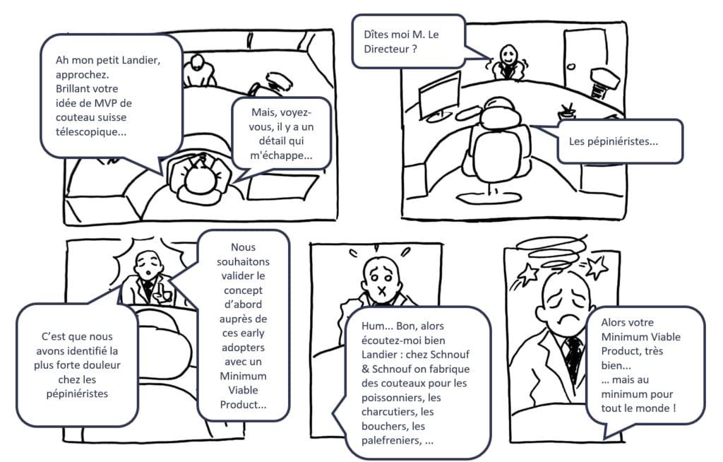 le produit final ne sera pas le MVP, il va s'enrichir de nouvelles fonctionnalités,donc adresser de nouveaux types d'utilisateurs, mais progressivement, au fur et à mesure des priorités