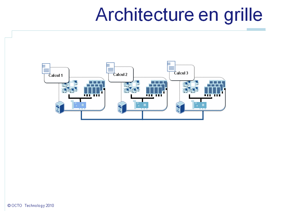 De façon à gérer une telle puissance de calcul au meilleur coût, l'architecture en grille de calcul est la meilleure solution. Une grille est une architecture de calcul qui autorise à coordonner un grand nombre de ressources distribuées autour d'un objectif commun. Dans notre cas, ces ressources sont des ordinateurs dont les processeurs sont utilisés pour réaliser ce calcul. Ces ressources peuvent être distribuées, c'est-à-dire distantes physiquement et liées par un réseau informatique.