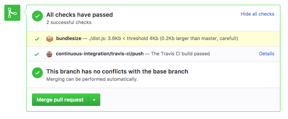 Une des premières métriques à mettre en place est la taille du bundle javascript de production. Le projet bundlesize vous permettra de la mettre en place sur votre CI (actuellement compatible avec Travis, CircleCI, Wercker et Drone).
