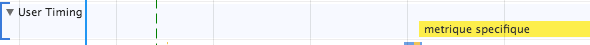 Vous pouvez également implémenter vos propres métriques à l’aide de l’api window.performance. La méthode performance.mark() permet de poser un marqueur à un instant précis et la méthode performance.measure() de mesurer le temps entre 2 marqueurs (exemple). Cela peut vous permettre de mesurer de façon plus fine les parties de votre application importantes d’un point de vue fonctionnel. Une fois la méthode performance.measure() appelée votre métrique devrait apparaître dans les chrome dev tool.