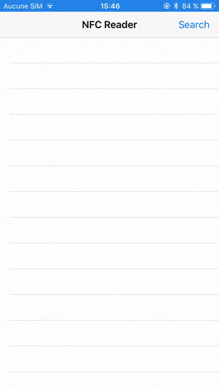 Ensuite, dans votre storyboard ajouter un bouton “Search”, l’action sera gérée au niveau du controller dans la méthode startNFCSearchButtonTapped.