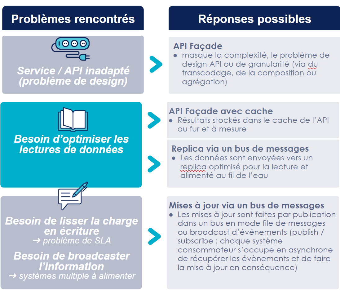 On peut être tenté de dire que tous les patterns modernes d’architecture sont décrits sur Internet, mais l’expérience montre qu’il vaut mieux reformuler et partager les choses pour synthétiser l’essentiel, lever les malentendus et mieux évaluer l’utilisation de ces patterns dans le contexte de l’entreprise. Le temps passé en discussion et en indécisions dans les rituels ou les instances est en grande partie dû à une mauvaise appropriation des principes d’architecture, en particulier sur l’intégration et les échanges.