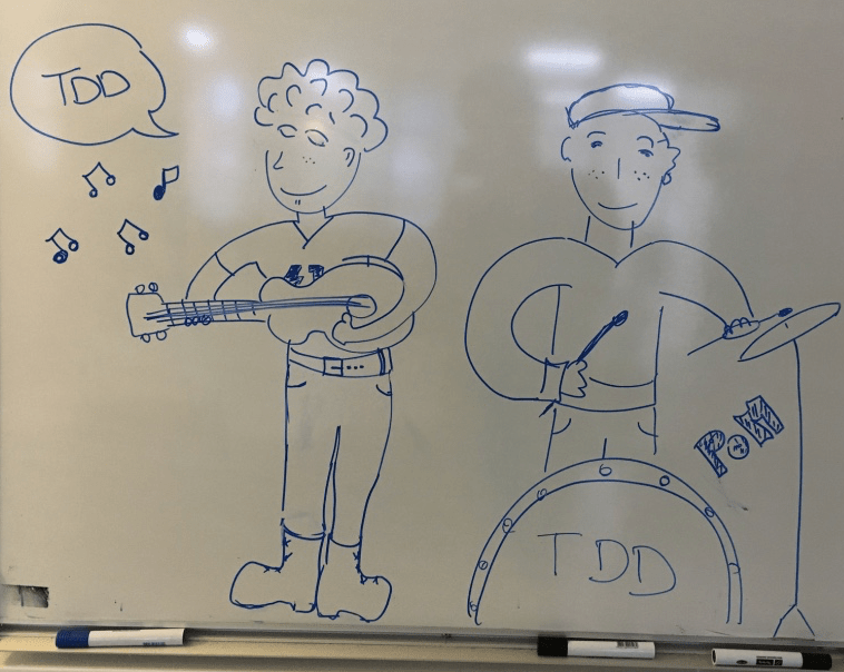 As we would not stop writing code, we had to make sure not to get things any worse. So we thought about using TDD, a coding technique that consists of writing tests before writing code. The problem was that only a few team members were familiar with TDD and used it everyday. Most of us barely knew what the acronym stands for.
