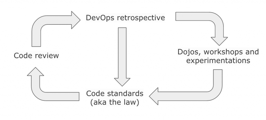 It is a ritual that allows us to take decisions and to share about our code and infrastructure. In addition to the sprint retrospective, we have adopted this ritual to focus on technical issues. This is a one hour meeting between DevOps only (all the team members co-work on development and infrastructure).