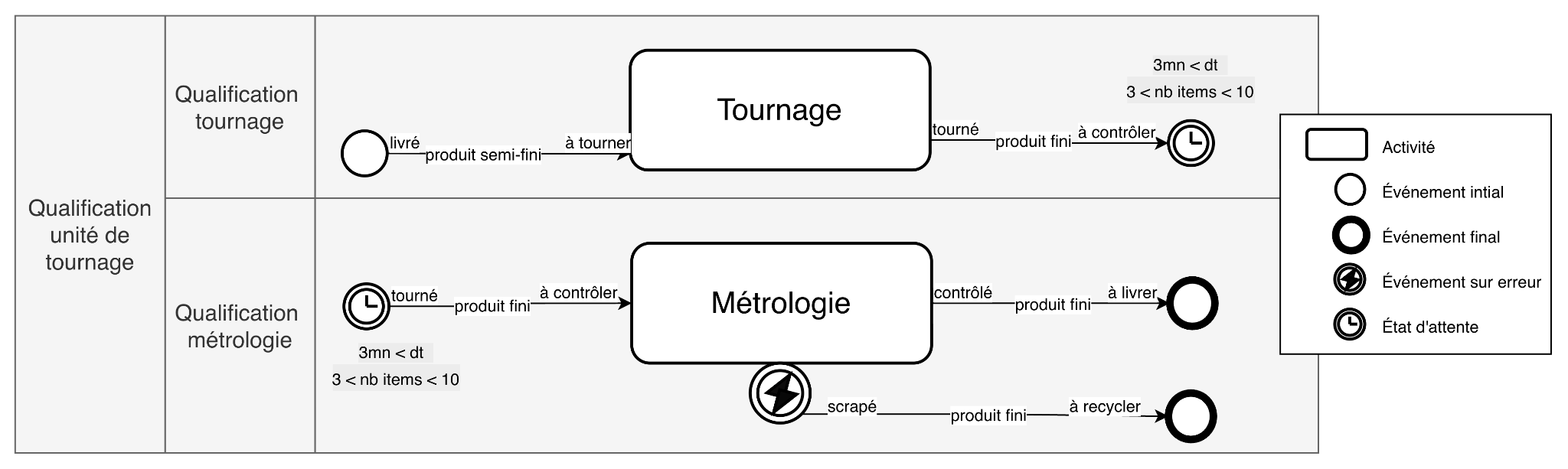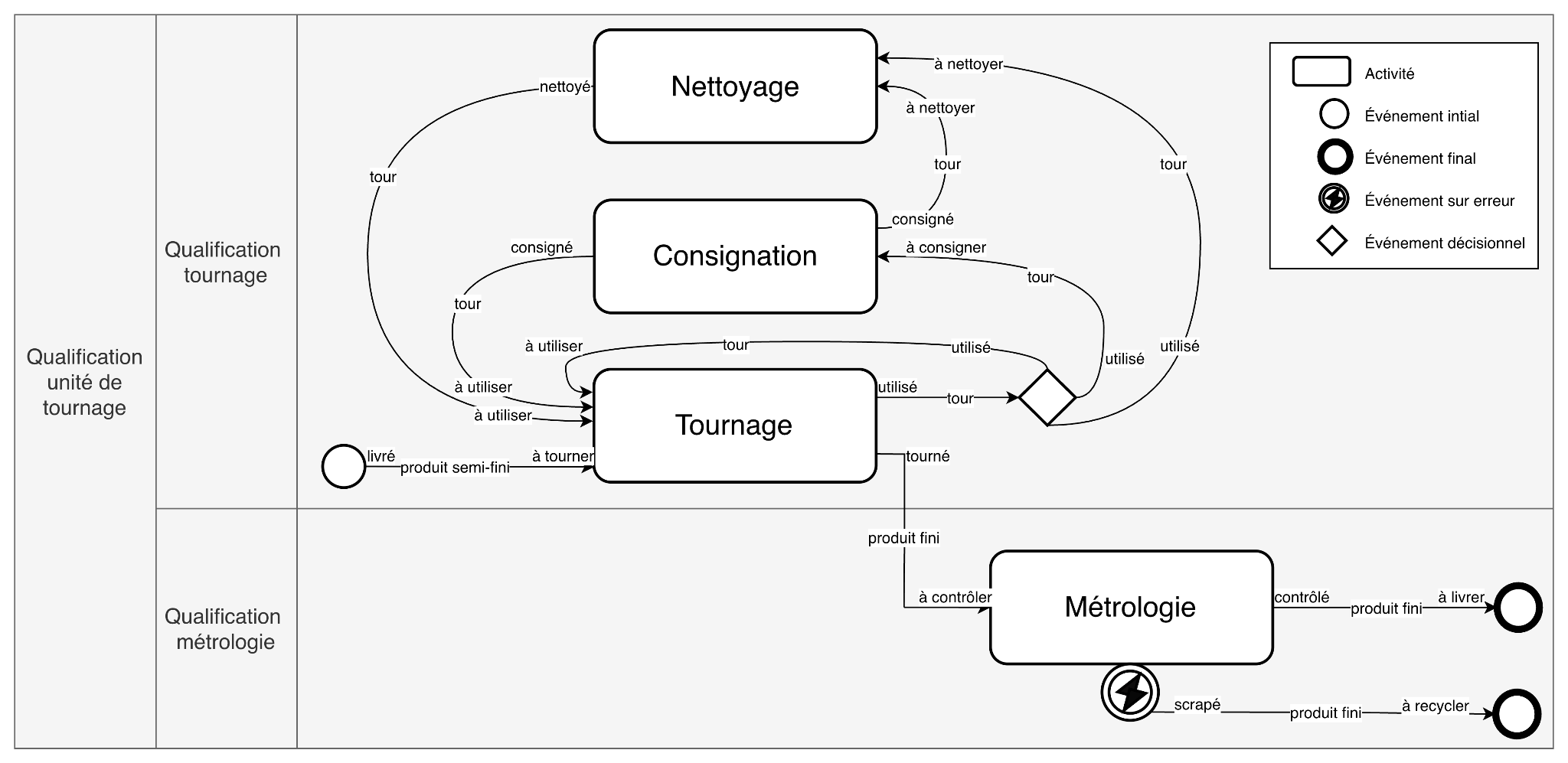 Fig_6 : Représentation hybride BPMN et MaE de l’unité de tournage