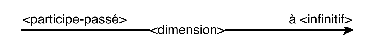 C’est pourquoi le modèle d’activités, productives et non-productives, doit être complété par celui des états de transitions entre celles-ci. Pour cela, introduisons leur annotation sémantique basée sur la construction syntaxique suivante “<Dimension> <Participe-passé> à <Infinitif>” :