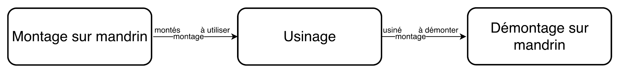 En appliquant ce principe, Fig_9 détaille les sous-activités et transitions de la qualification tournage de Fig_7. Cette représentation est beaucoup plus proche des préoccupations des acteurs opérationnels qui visualisent leurs activités par qualification. Cette liste d’activités est complétée par ce qui ressemble à une Bill Of Material (BOM) étendue. En effet, une BOM intègre les dimensions [produit, composant] mais pas [équipment, outil, consommable, qualification].