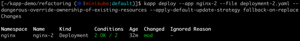 L’option --dangerous-override-ownership-of-existing-resources vous permet de remplacer les labels d’une ressource pour la mettre sous le giron de votre nouvelle application. Attention tout de même, certains labels peuvent se retrouver dans des champs immuables (par exemple spec.selector.matchLabels pour les Deployments). Il faudra alors recréer la ressource.