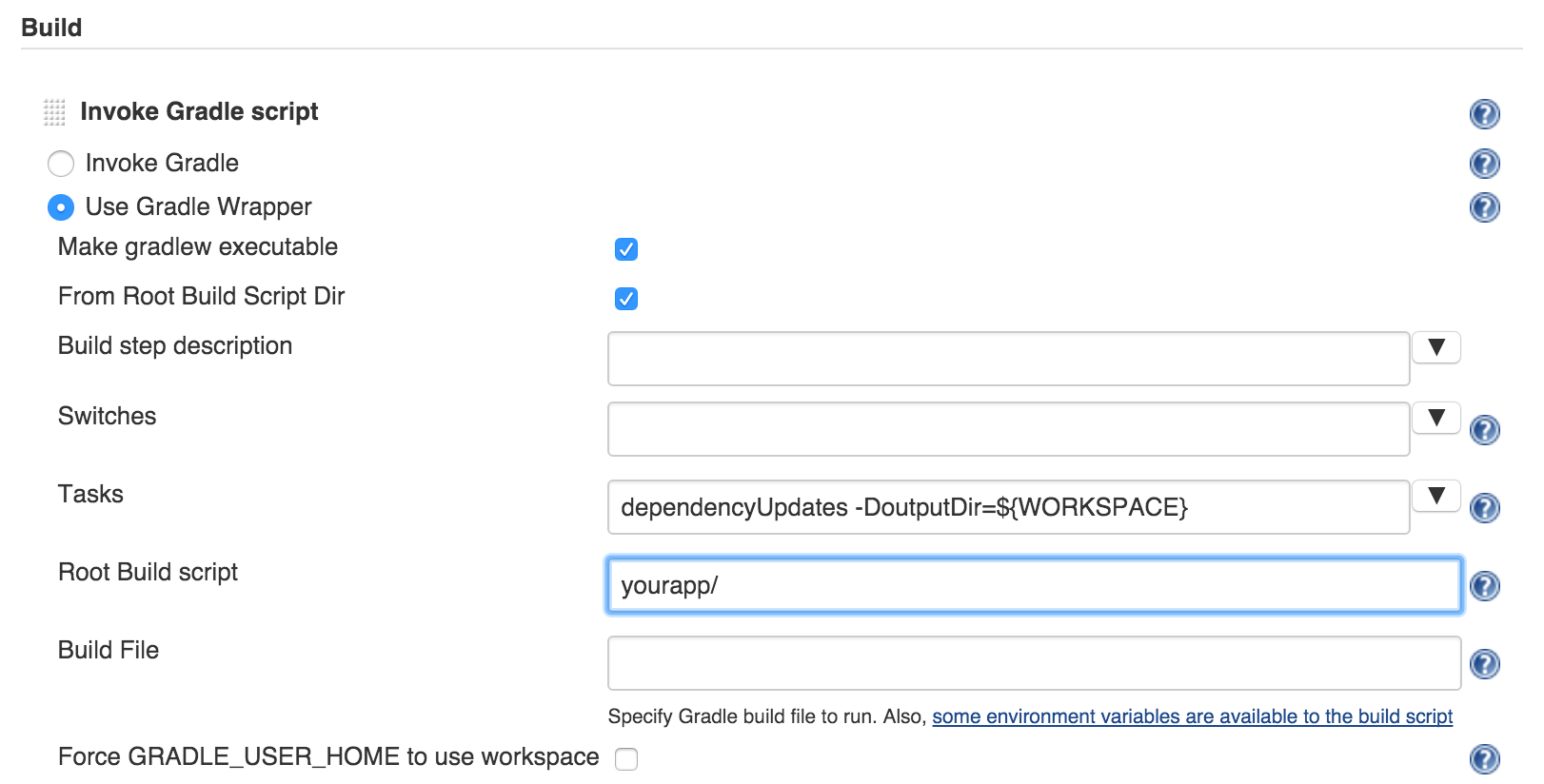 dependencyUpdates -DoutputDir=${WORKSPACE}