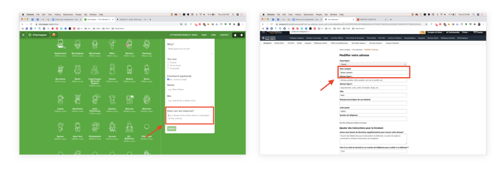 Et quand tout le reste échoue, alors reste le champ texte. Ce composant permet d’entrer un texte libre, souvent peu ou non formaté, sur une ou plusieurs lignes. En couplant champ textuel et autocomplete, il est également possible de ré-aiguiller l’utilisateur vers une liste de choix pré-formatée, et ainsi accélérer sa saisie.