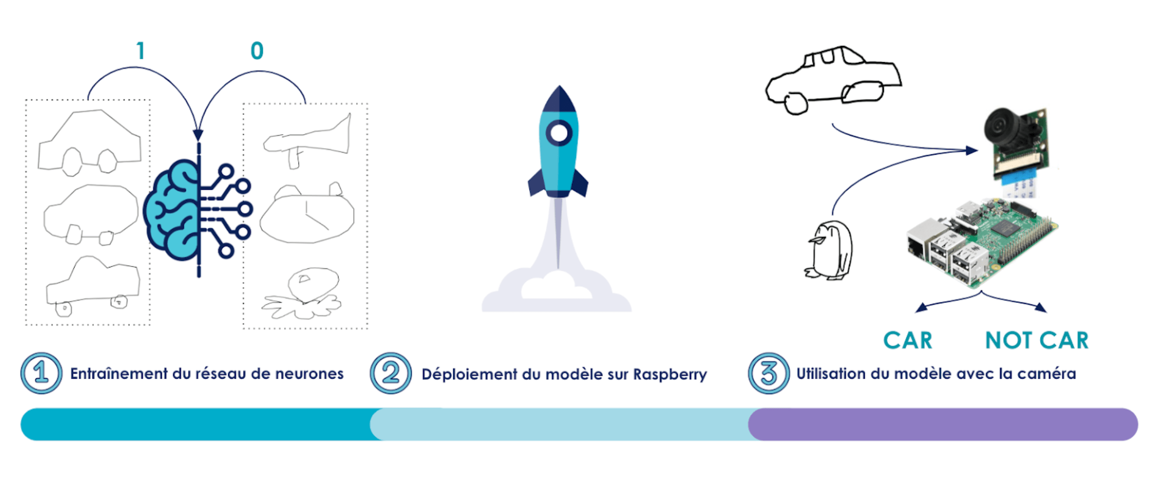 Pour illustrer ces subtilités, nous vous proposons d’étudier le cas d’usage de reconnaissance de dessins grâce à un raspberry. Pour cela, nous détaillerons l’approche en trois étapes pour autant d’articles : l’entraînement, le déploiement et enfin l’utilisation d’un modèle de Deep Learning.