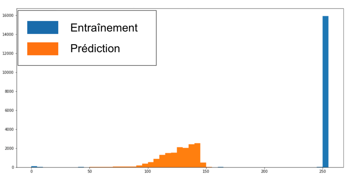 Fig 3 : Histogramme des valeurs de pixel entre une image d’entraînement et une image de production