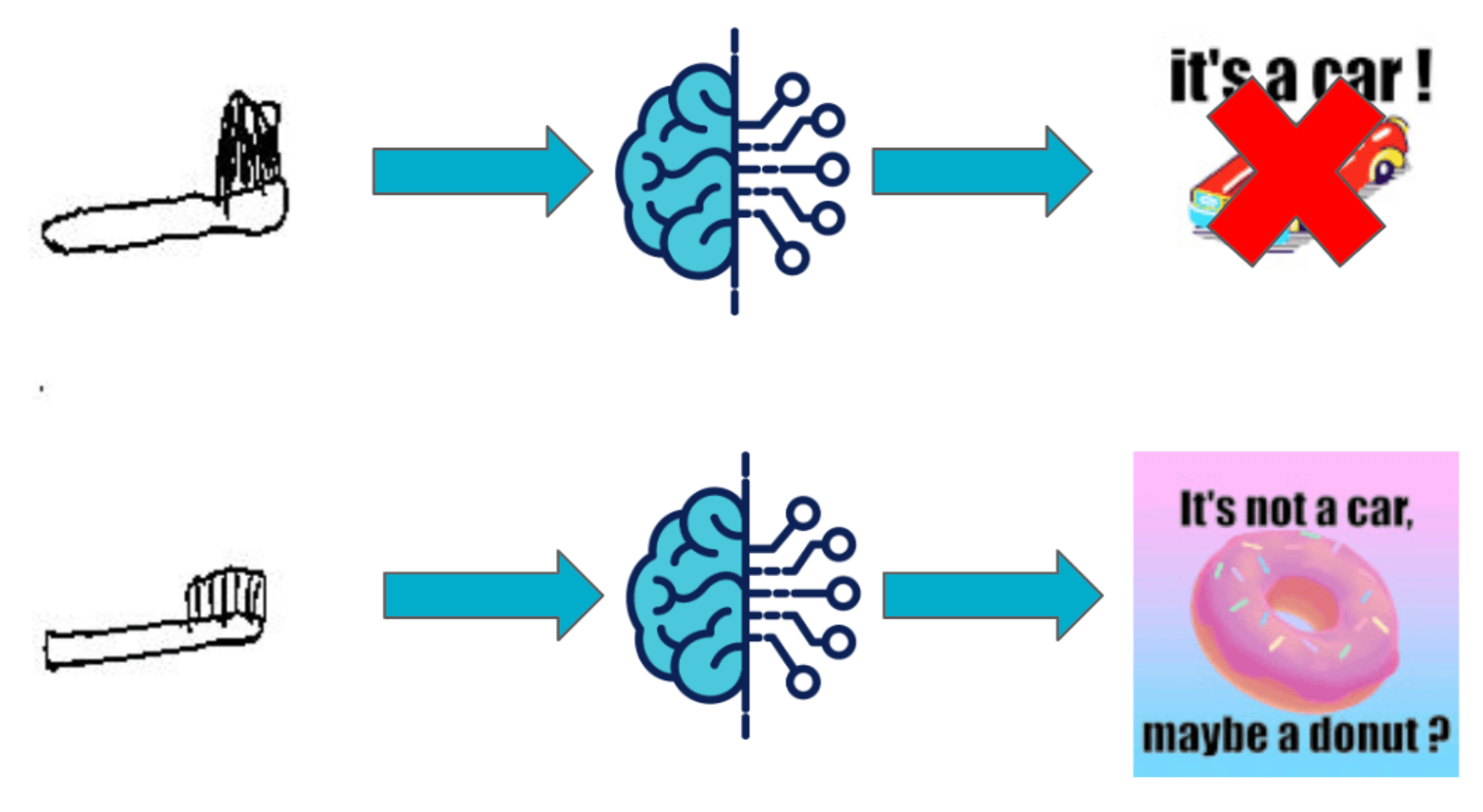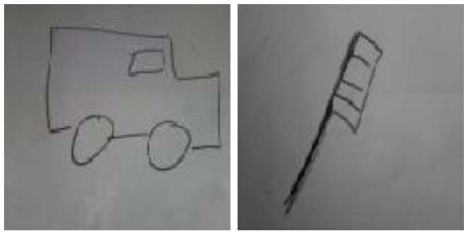 Grâce à cette dernière, prenons deux premières photos : un dessin de voiture et un dessin de brosse à dent par exemple. On laissera au lecteur le soin de déterminer quelle figure représente quel dessin.