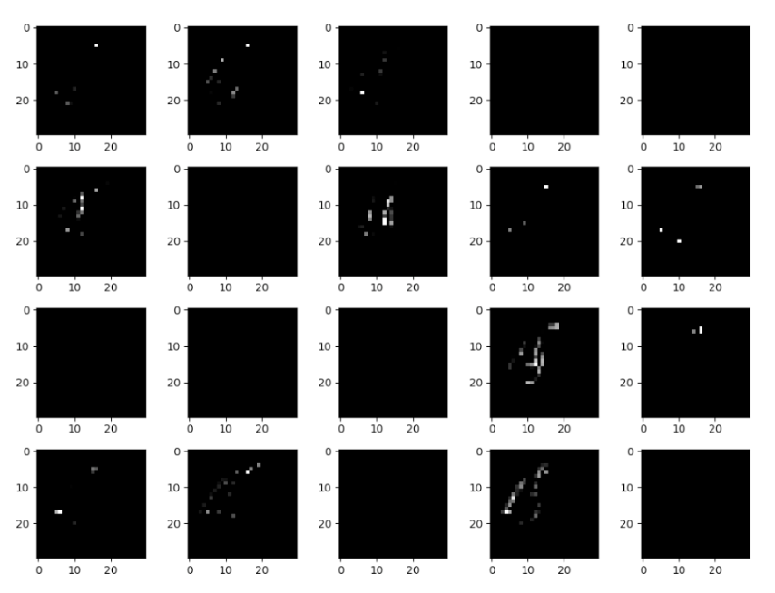 30 parmis les 32 features map en sortie de 1ère couche                  20 features map en sortie de la 2ème couche