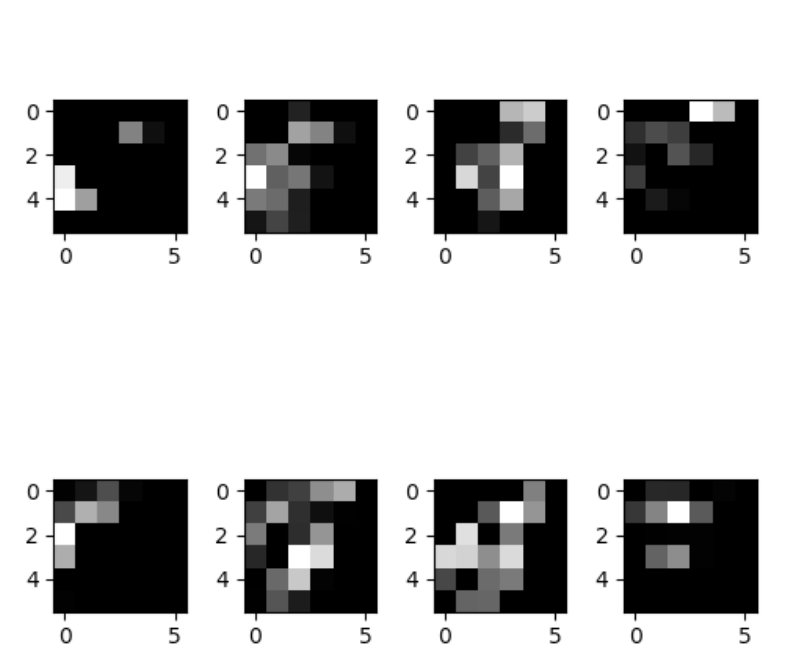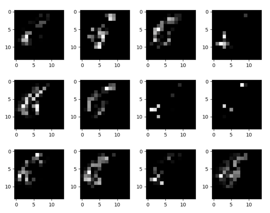 12 features map en sortie de la 3ème couche                          8 features map en sortie de la 4ème couche