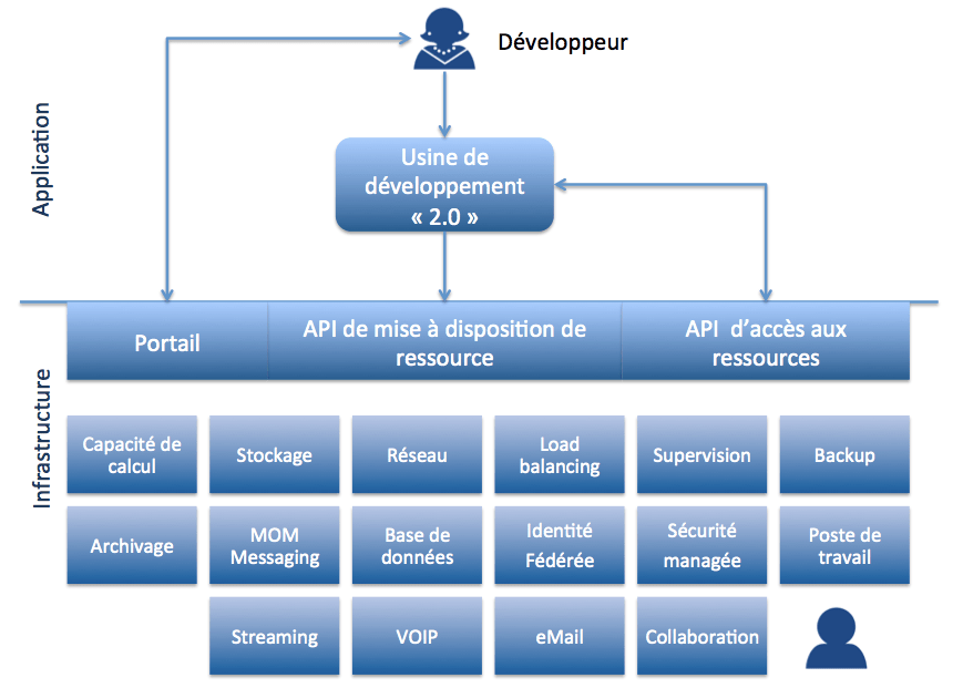 - L’Infrastructure agile se comporte comme une application informatique traditionnelle vue des utilisateurs. En effet, ces derniers voient une API programmatique et un Portail ;